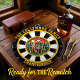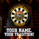 Diseño circular de un majestuoso oso oso pardo en un bosque, enmarcado con un blanco audaz.