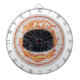 Una ardiente obra de arte de Hockey Puck Slap Shot con llamantes letras amarillas, naranjas y rojas en un diseño circular sobre tablero de tiro profesional.