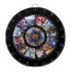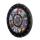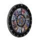 Tablero de dardos de horoscopio muy atractivo. Bonito de color púrpura y azul sobre un fondo negro sólido con jaulas metalizado de números y secciones.