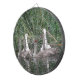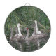 Este impresionante tablero de dartboard presenta una hermosa fotografía de un par de cisnes adultos y sus 4 ciclones nadando a lo lejos a lo largo de un tranquilo río.
