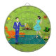 Esta Junta de Pareja Moderna de Mediados del Siglo se parece a una escena de una comedia romántica. El estilo de los años 60 presenta un diseño de arte minimalista y cuenta con una atractiva pareja de personalizados que disfrutan de una velada romántica en casa. La sofisticada sala cuenta con una pared de piedra verde con una chimenea que arde. El mobiliario de la habitación incluye un naranja, una tumbona a juego con el reposapiés, un reloj de pared rojo, de starburst, una lámpara amarilla, de sputnik y una mesa naranja, en la que se encuentra un reproductor de discos portátil de color verde. En el suelo, al lado de la mesa final, se puede ver un disco de vinilo saliendo de la portada de un álbum kitsch. En el centro del parqué verde, hay una gran alfombra rectangular verde azulada. En medio de la escena, tenemos una pareja muy sofisticada. Hay un hombre cortés con un traje azul real, una camisa blanca y una corbata azul. El hombre alto, oscuro y guapo está mirando a su adorable compañero. La elegante mujer de cabello cuervo lleva un vestido de aqua flouncy. Cada una de ellas sostiene un cristal de martini de cristal con una oliva flotante. Salud! ¡Aquí está la velada perfecta en casa!