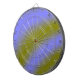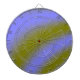 Esta impresionante dart board presenta una imagen creada digitalmente que consiste en una serie de bandas de color onduladas alternando azul y verde que se parecen a una serie de bandas fluorescentes de nube.
