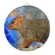 Una toma de una ardilla de cola roja de Fox que está cerrada, brillante y colorida con un fondo azul. Eso es en un tablero de dibujos animados.