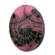 Este impresionante tablero de dardos está cubierto de hermosos remolinos góticos negros que se extienden como dedos de la oscuridad hasta el fondo rosado profundo. Está lleno de tonos diferentes y cuanto más lo mires, más parece que gire delante de tus ojos.