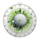 Las sombras del estilo del Grunge del verde, diseño del golf, atracción en su pelota de golf de la cara con los splats y las hojas alrededor de ella y los golfistas con las bolsas de golf a disposición, colocándose en la superficie de la pelota de golf, con golf señalan pegarse por medio de una bandera hacia fuera.