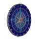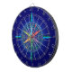 El dart board de Kayak incluye kayaks de colores vivos dispuestos alrededor de un diseño rosa de brújula.