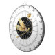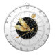 Pintura artística, oro, joyería, libélula espumosa con alas detalladas, filigree sobre flor silvestre dorada, contra círculo texturado negro. Lluvia dorada.