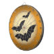 Este dardo tiene un fondo naranja oscuro con la luna en el centro y tres murciélagos volando frente a la luna.