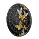 Oro, joyas y mariposas blancas sobre fondo negro. Mariposa dorada.