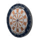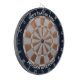 Elevate your game room or man cave with this sophisticated custom dartboard. Featuring a striking geometric design in faux metallic copper and brushed silver, this board is set against a deep navy blue marble-textured background for a premium, modern aesthetic.