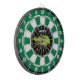 Cocodrilo lindo y confeti dorado sobre tablero Dart negro, verde esmeralda y blanco. El texto se puede personalizar. ¡Ideal para divertirse en familia!
