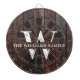 Este moderno y rústico tablero de dardos cuenta con un monograma familiar y un nombre sobre un fondo de madera oscura impreso en un diseño de tipografía retro vintage. Personalizar con su nombre familiar e inicial y haga de este su propio mantenimiento único para la casa de campo estilo lago, cabaña familiar o cabaña de campo - o su acogedor hogar.