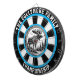 Descubra un impresionante diseño circular con un majestuoso alce con grandes antorchas en un bosque sereno, acentuado por un atrevido overlay objetivo. ¡Perfecto para los amantes de la vida salvaje y el arte!