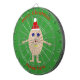 Este increíble dardo board tiene un divertido personalizado de un huevo con brazos y piernas. El huevo tiene brazos y piernas y una pequeña grieta en la cabeza exponiendo el interior blanco. Tiene ojos azules con un alumno negro y una gran sonrisa donde se puede ver la yema del huevo. La concha de huevo parece áspera. Este huevo de Navidad lleva puesto un sombrero de santa listo para fiesta esta temporada navideña.