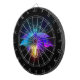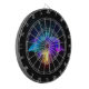 Luciérnagas mecánicas antiguas con bombilla de luz y finas alas brillan naranja, violeta, turquesa sobre fondo negro. Estilo Steampunk.