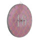 Esta diana de dardos cuenta con una cubierta brillante dorada y rosa con un diseño de monograma, perfecto para aquellos que aman la estética femenina y glamorosa.