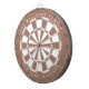Un diseño de tablero clásico con triángulos marrones y blancos alternados. Utiliza un tono moderno de marrón. Arriba y abajo están el nombre y un mensaje como texto en arco, en mayúsculas.
