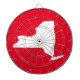 Forma de mapa blanco del estado de Nueva York contra el rojo brillante. El fondo está decorado con otro color rojo o con otros colores. Agregue texto personalizado para crear su propio tablero de dardos. También puede cambiar el color de la forma del mapa blanco de Nueva York.