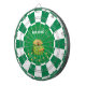 Olla moderna de oro y texto en tablero de dardos verde esmeralda y blanco. El texto se puede personalizar.