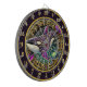 Añade carácter a tu cueva masculina o pabellón de pescadores con esta extraordinaria obra de arte sobre el tablero. La obra de centro exhibe una majestuosa orca con un cuerpo que brilla en tonos morados, dorados y azules, acompañado de una tortuga de asombrosa detalle. Encaramado en un adornado borde circular de florecientes doradas y brillantes piedras preciosas verdes, esta pieza irradia un ambiente de fantasía subacuática. Su mezcla de encanto rústico y creatividad vibrante lo convierten en un lugar destacado en cualquier espacio recreativo. Ideal para los amantes de la vida marina o los amantes del exterior, esta obra de arte sirve como punto de partida de una conversación y de decoración sofisticada.