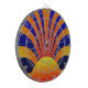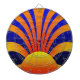 La pared de ladrillo de Sun Graffiti es una obra de arte digital con un fondo de degradado azul oscuro y un sol de gradiente naranja de color rojo amarillo en la parte inferior, vigas de sol en la parte superior y exterior.