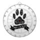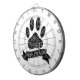Huella de pata de perro angustiada con cinta negra. El mejor amigo del hombre. Imagen en blanco y negro.