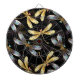 Patrón sin foco con oro, joyas, libélulas brillantes con las detalladas alas brillantes sobre fondo negro. Dragonfly de oro.