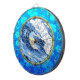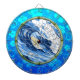 Pintura de Digitaces de una persona que practica surf que practica surf el tubo en un marco de bambú redondo. Con el azul de océano un fondo con las tortugas y el hibisco hawaianos de mar de Honu florece.