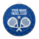 Personalized custom logo padel player dartboard. Crossed padel racket design with tennis ball. Blue or custom color.