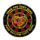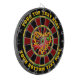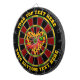 Diseño de tablero rojo oscuro, negro, verde y amarillo. Cada color es personalizable. Pimienta caliente en llamas. Dos áreas de texto personalizado en el anillo exterior.