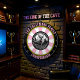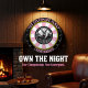 Admire este elegante diseño de ciervo en un bosque, acentuado con un atrevido superpuesto objetivo.