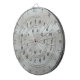 Todas las letras del alfabeto se imprimen en una tabla de dardos. Palabras de ortografía para puntos. Las letras están impresas en un diseño tipo burbuja de azul claro y gris.