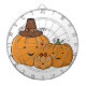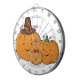 Cheerful pumpkin family with a brown hat and red bow, warm orange hues and friendly faces; ideal for Halloween collections and autumn wear for families and kids alike.