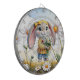 Girly rabbit with big puppy dog eyes and pink ears wearing a polka dot bow and knitted jumper
