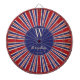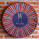 Tablero de dardos con explosión solar patriótica desgastada en tonos de rojo, blanco cálido y azul, personalizable con monograma, nombre y fecha de establecimiento.