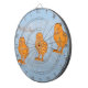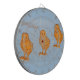 Una postal antigua y vintage de la Pascua feliz con tres chicas de fieltro amarillas borrosas todas seguidas. Antecedentes en azul. ¡Feliz Pascua!