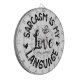 A playful and humorous circular typography design featuring the phrase, "Sarcasm Is My Love Language." The word "Love" is in a central, flowing script with small decorative hearts and a leaf motif, while the surrounding text is in a clear, bold, all-caps font. This design is perfect for those who express affection and humor through sarcasm.
