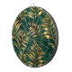 Seamless pattern of gold, jewelry, shiny fern branches and leaves on green, woodland, textured background. Golden fern.