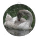 Este impresionante tablero de dartboard muestra una fotografía de un hermoso cisne. El cisne es un ave juvenil, se nota por las plumas grises en la cabeza y la falta de un pico naranja. Parece que el cisne está durmiendo, pero en realidad está curando sus plumas.
