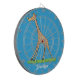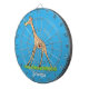 Del feliz safari. Esta tierna jirafa tiene una mariposa en su nariz con un fondo azul.