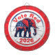 "Este diseño presenta un estilizado elefante rojo, adornado con estrellas y rayas que recuerdan a la bandera estadounidense, centrado en un círculo delineado en rojo y azul. El texto 'Vote Rojo' gira alrededor de la parte superior del círculo, mientras que '2026' se muestra en negrita en la parte inferior. Este diseño es claramente de naturaleza política, haciendo referencia al Fiesta republicano (indicado por el color rojo y el símbolo elefante) y las próximas elecciones de 2026. Se podría usar en una variedad de productos dirigidos a los votantes republicanos, como mercadería de campaña, carteles de manifestaciones políticas o material de alcance electoral".