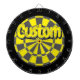 Yellow, Charcoal Gray, And Black Colored Dartboard Game Including 6 Brass Darts. Personalize with your custom text!