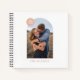 Un cuaderno sencillo con un diseño de arco moderno que se puede usar como marco fotográfico. Debajo de la foto hay espacio para un nombre familiar. En la esquina superior izquierda hay un punto colorido que incluye espacio para texto personalizado. La parte posterior del diario tiene un patrón de puntos coordinado de color. Este bloc de notas minimalista sería perfecto como boda o álbum de bebé.