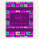 Cuaderno de cuaderno del diario de costura colorido impreso en ambos lados con filas de máquinas de coser de bonito, hilo sinuoso y Agujas. En la parte delantera del bloc de notas también se incluye una caja con el nombre del destinatario y las palabras Scoser Journal. Personalizar cambiando el nombre, y también el título del diario si lo desea.