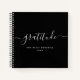 Diario de gratitud blanco y negro con caligrafía de escritura moderna y tipografía mínima que muestra tu nombre y año.
