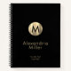 El moderno diario de listas de tareas pendientes presenta un elegante diseño monogramado sobre fondo negro rico. Monograma personalizado inicial y nombre en letra simple y elegante con un medallón de monograma de oro metálico cepillado. Mostrado con un nombre personalizado y un monograma inicial en la parte delantera de la tipografía moderna, este diario personalizado de la lista de tareas pendientes está diseñado con texto personalizado en la parte delantera; papel de la lista de verificación en el interior. Puede cambiar el texto mediante los campos proporcionados o utilizar el botón "mensaje" para ponerse en contacto con el diseñador para obtener ayuda. Para crear su propio cuaderno diario personalizado de lista de tareas pendientes: 1. Seleccione personalizar esta plantilla. 2. Sustitúyase el texto. 3. Revise su diseño para dimensionar y colocar. Una moderna lista minimalista de tareas pendientes para el trabajo de oficina en casa o la escuela o un regalo meditado para el organizador en su vida.