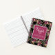 Revista cristiana de oraciones en una floral borgoña y rosa rubor sobre diseño negro. El versículo de la Biblia Philippians 4:6-7 está impreso en la parte delantera: "No te preocupes por nada más que en todo por la oración y la petición con acción de gracias presentar tu petición a Dios".