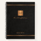 Elegante libro de cocina de oro negro familia o de recetas lujosas personales con un aspecto de cuero negro y un monograma metálico de oro y escritura de nombres.