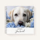 Un cuaderno con la imagen de un Labrador Recuperador amarillo con flores blancas y azules bonitos, personalizado con su nombre y el tipo de cuaderno que guarda - ya sea un diario, un diario de entrenamiento para perros, notas para criar cachorros o sólo un cuaderno divertido para uso diario. Hace un gran regalo para el amante del perro en tu vida.