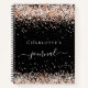 Fondo negro. Rosa de oro, confetti rubio. El título: diario escrito con una escritura de estilo con letras a mano moderna y jovencita con chispas. Letras de color blanco. Un cuaderno para dibujos, bocetos, notas y deberes escolares.